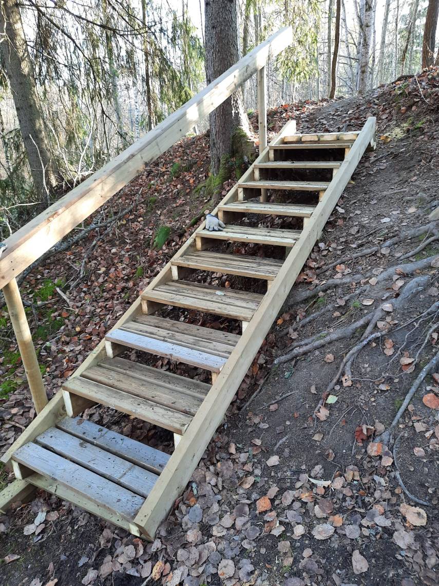 Nyt kelpaa kulkea. Ahkerat puurtajamme saivat valmiiksi rantapolulle upeat portaat. Kiitos paljon Rainer, Kari ja Markku. Lämpimästi tervetuloa Kaukasten upealle luontopolulle. Lähtöpiste on Jokipadontie 6.