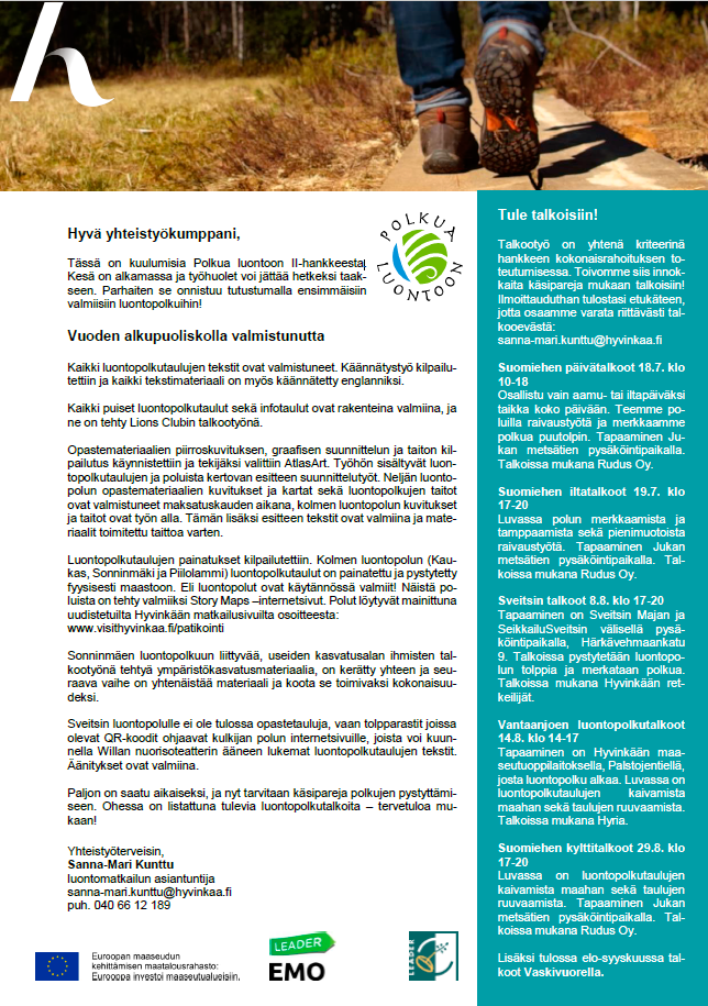 Kuulumisia Polkua luontoon II-hankkeesta