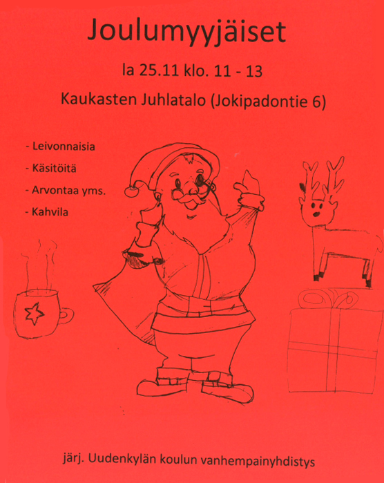 Joulumyyjäiset Kaukasten Juhlatalolla 30.11. klo 11 – 13.