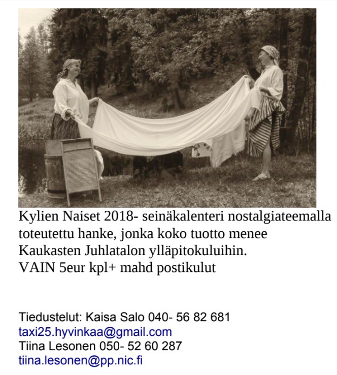 Loput tämän vuoden Kylien Naiset -seinäkalenterit puoleen hintaan